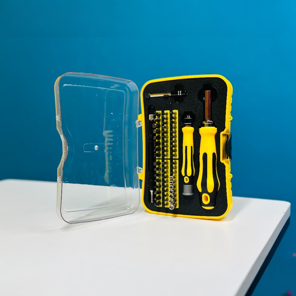 This 60 in 1 screwdriver repair tool kit is designed for professionals, technicians, and home users. The set includes a wide range of precision bits, magnetic handles, and an extension rod that make repairing electronics, assembling gadgets, and fixing household items easier than ever. Packed in a durable carry case, it is portable, well-organized, and built for long-lasting use.